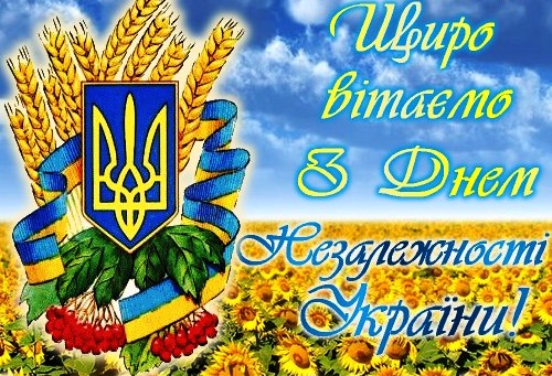 Щиро вітаємо вас із визначним святом — Днем незалежності України! Бажаємо успіхів і плідної праці на благо українського народу.